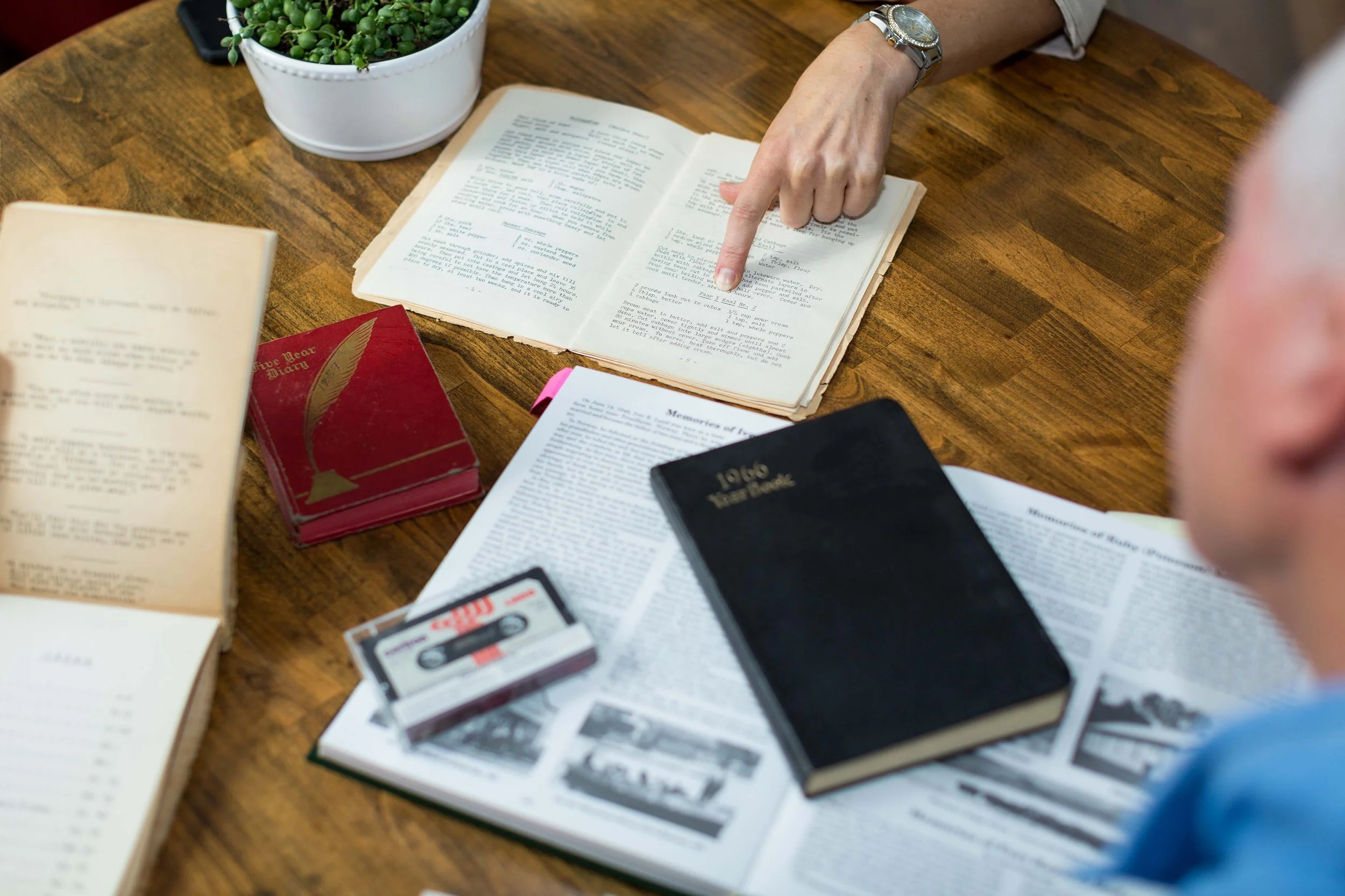 Most of my projects launch with an elder interview, which will feel like an easy conversation between friends. This allows Mom and Dad to talk and reminisce as much as they’d like while I engage and listen. These interviews typically take place over an average of four sessions totaling nine recorded hours, during which I love to ask follow-up questions that intersperse historical events throughout their own personal history.